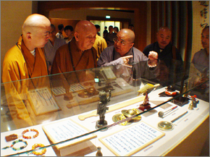 协会的贵宾们在大殿礼佛后,接著参观法鼓礼赞图、圣严法师墨宝展、开山纪念馆、地宫特展、祈愿观音殿。不论是法师或学者,都专注纪录著法鼓山法师们详尽的解说内容,期望能够将法鼓山许许多多既能传承佛教义理,又能推陈出新的理念,带回大陆参考。徐州兴化寺方丈果光和尚,尤能认同法鼓山善用环境,达到提升心灵层次的做法,同时主持江苏佛教书画院且擅场书学艺术的他,谈到法鼓山圣严法师的书法作品时,则特别赞赏圣严法师字里行间一股带来「沉静」的力量。来自上海社科院佛教研究中心,并常以圣严法师著作当成学生教材的刘元春教授,则是肯定园区中不焚香烧纸的礼佛方式,就他的观察,法鼓山的心灵环保和自然环保,正因为是由内而外的形成的一种观念转变,所以才能相得益彰。