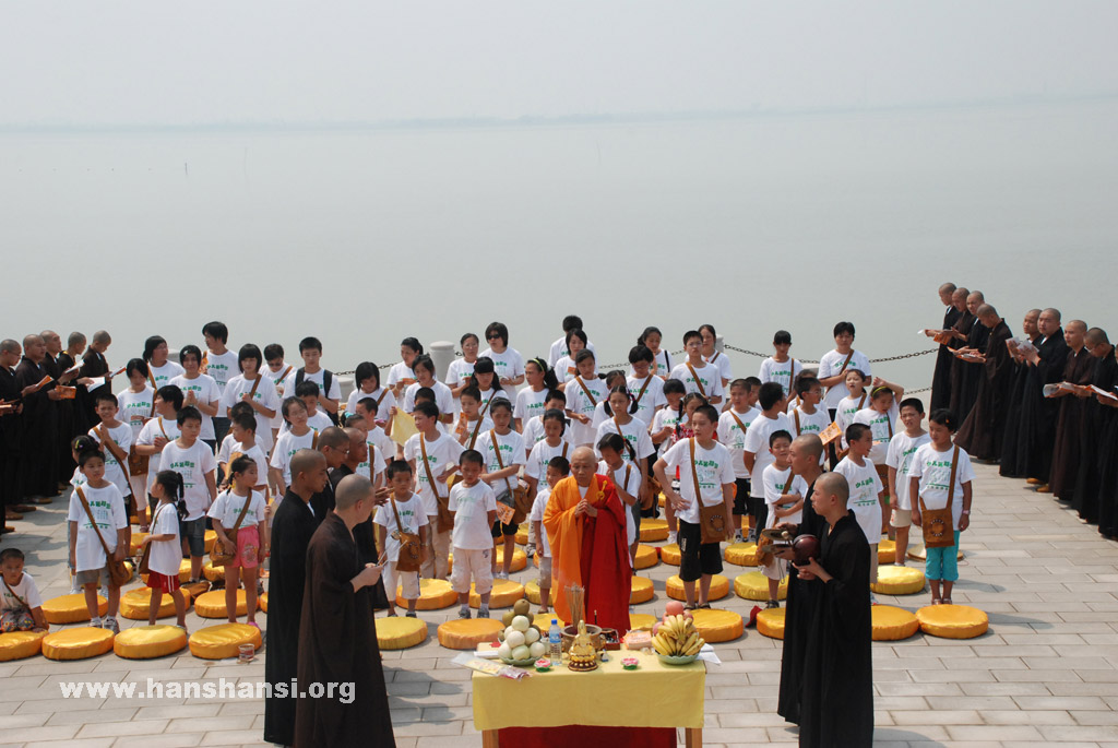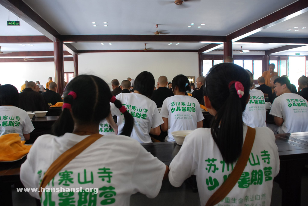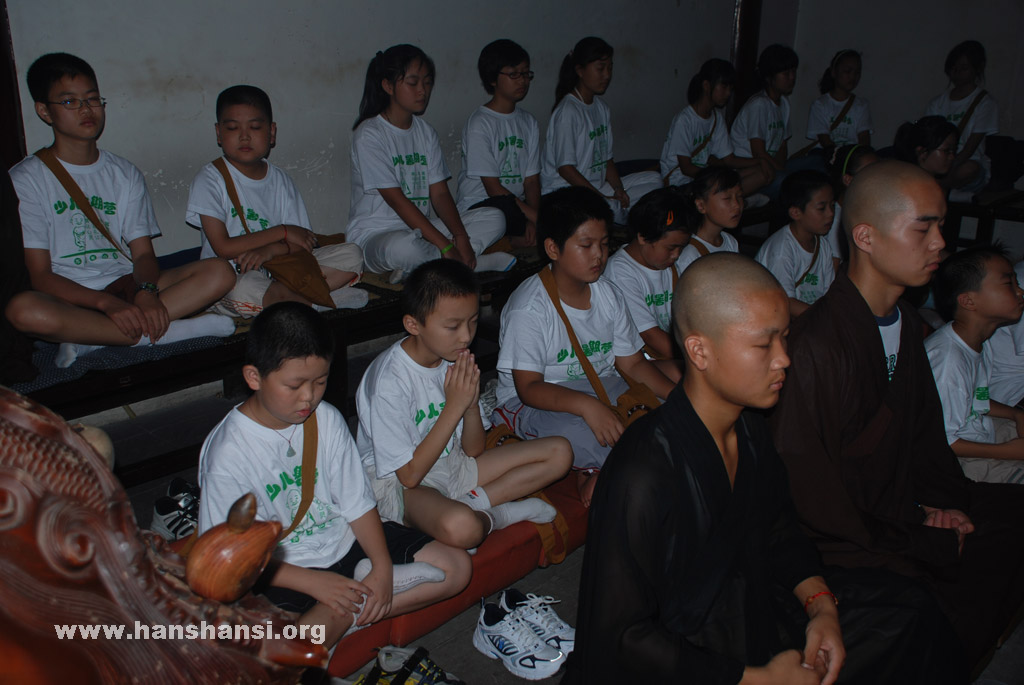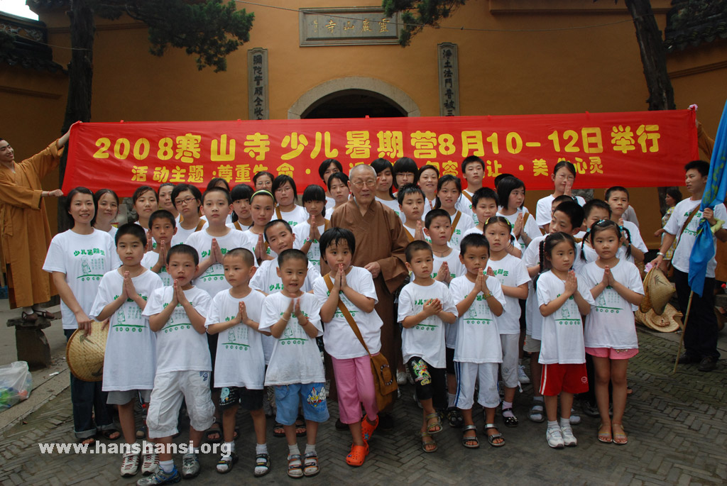 寒山寺少儿暑期营于8月12日下午4时圆满结束。寒山寺少儿暑期营活动为学员安排了:佛法开示、寺院修学体验(禅修、念佛、过堂)、传灯、放生、爱护环境卫生、登山等系列活动。
