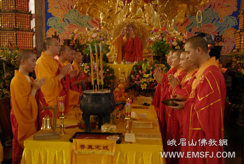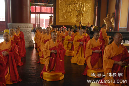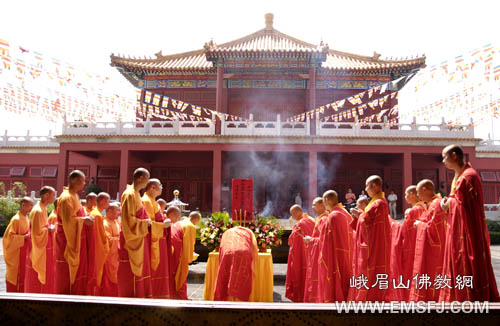 峨眉山僧众于大安寺举办系列祈福法会,祝愿奥运顺利圆满!