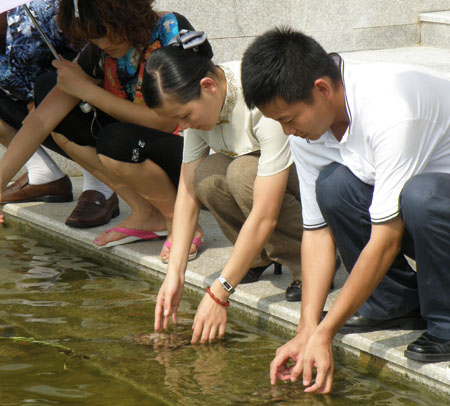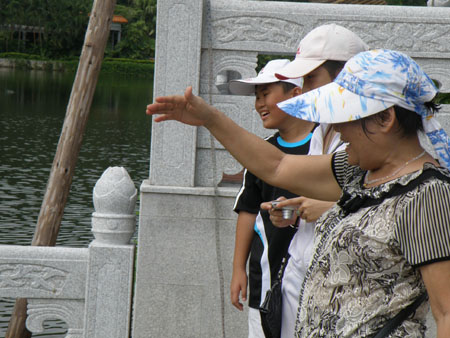 放生的信众中有名海南老人,今天她特意将自己在家养了多年的一只龟,在放生池边放生。龟迅速游到池中,似乎不忍离开老人,回头不停张望,在放生的人群众看到老人后,又往池边游。老人似乎也能读懂龟,微笑着朝龟挥挥手,让龟回归自然。万物皆有灵性,今朝放生,物类皆知感恩图报。功德无边无量!