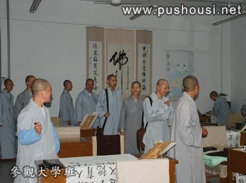 2008年9月16日中午,普陀山佛学院师生一行60余人,在参访团团长的带领下,到达普寿寺三加一僧伽教育工程之一的教育基地——大乘寺来参访。受到大乘寺当家师、教务长及大众师父的热情接待。参访团一行用过午斋稍事休息后,便在大乘寺当家师的陪同下,参观了大学班,并就学习和生活中的一些事项进行了热情而又广泛的交流,畅谈之余又乘兴参观了全国名闻遐尔的古代建筑——榆次老城。如果说两地佛学院学僧之间的交流在修学上都有了共同的提高,那么对老城古建筑的认识则是一种赞叹,是对中国人民智慧的又一次感悟。学僧在欣喜中踏着暮色归来,领受另一种法雨的滋润,师父在百忙之中抽出时间,与来访的法师、学僧座谈交流,并对后学们寄与殷切的期望,长辈的殷殷之情映于言表。