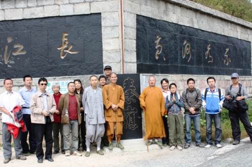 在沣峪内二道桥般若庵与圆通茅棚的三位尼师的茅蓬放下道粮后,我们继续前行,去看秦岭分水岭,那里是我国长江黄河两大水系的分水岭,也是我国南北方地理、地质、气候、生物、人文的重大分界线。在领头,悟明法师为大家开示终南胜境的人文意义。