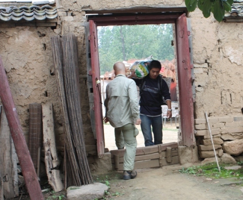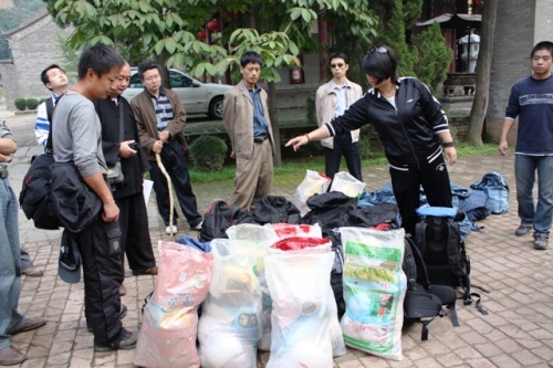 由于上嘉五台的住山者都经过一天门的罗贵法师处,所以我们将物资都放在这里,然后请当地民工背负送至各各茅蓬。