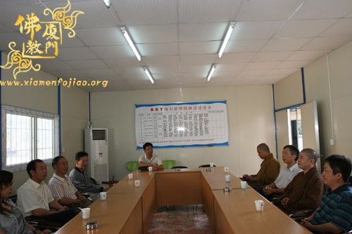 10月28日,厦门市民族宗教事务局蔡永华副局长、一处黄镇辉处长,厦门市佛教协会会长则悟大和尚、秘书长净心法师,思明区组织部部长、区政协主席及前埔街道相关负责人一行来到厦门磨心山妙释寺重建地址视察拆迁工作的实施情况。视察结束后,市民宗局、市佛协、区政协和前埔街道领导在街道拆迁办座谈。