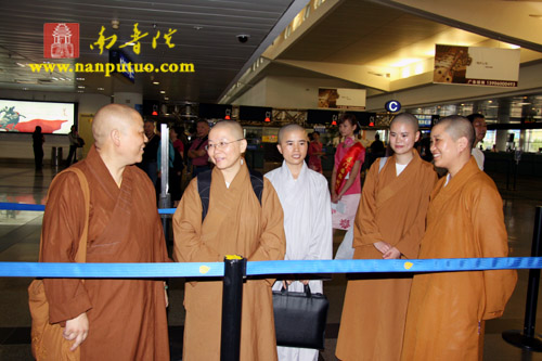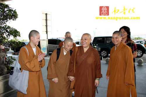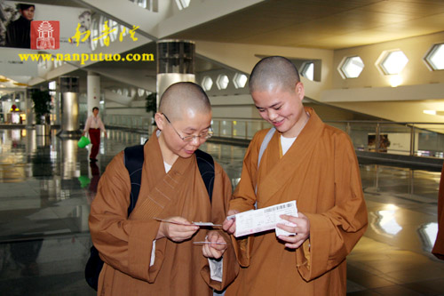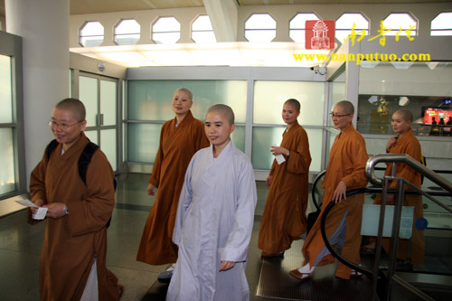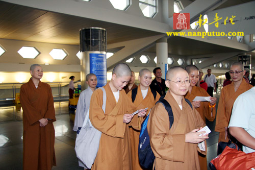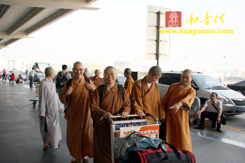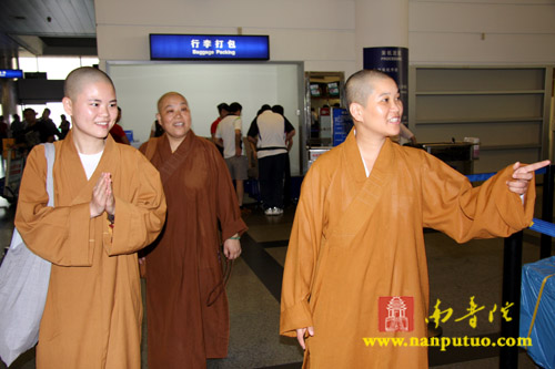 闽南佛学院硕士毕业生果觉法师、在读学僧如祥法师在“2008佛教外语交流会”上表现出色,荣幸接到由中国佛教协会、中华宗教文化交流协会联合举办的“佛教英语培训班”的通知,将代表闽院参加培训班的学习。10月30日下午,受学院委托,闽院办公室副主任悟源法师、副教导长超波法师、班主任自信法师、乘一法师以及学僧代表特地前往厦门高崎机场为参加培训的两位法师送行,祝福她们一路平安、学习生活一切顺意。