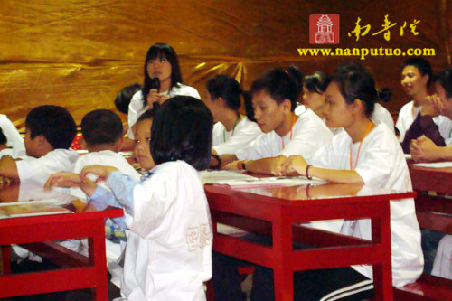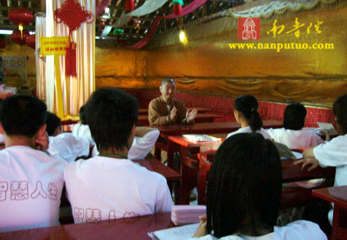 闽院副教务长中观法师于9月30日至10月3日,应邀赴福建古田极乐寺参加第三届“智慧人生”学修营活动。期间,法师为来自遥远的黑龙江、广东、浙江、广西、北京等天南地北的学员作精彩开示。佛学讲座上,法师为大家开示的内容是:“八大人之念”——少欲、知足、闲居、持戒、三昧、智慧、多闻、精进。因时间关系,法师只围绕少欲、知足两点进行深入说明,并且,广泛的借助如‘ 填不满的是欲海,攻不破的是愁城’、‘人人知足,则天下有余。人人安分,则天下无事’、‘不妄求则心安,不妄做则身安’等名言警句,告诉学员们要在生活中了解佛法的现实意义。