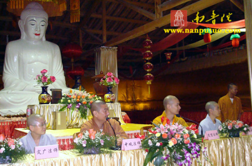 开营式,左起依次是:定广法师、中观法师、定空法师、真慧法师。