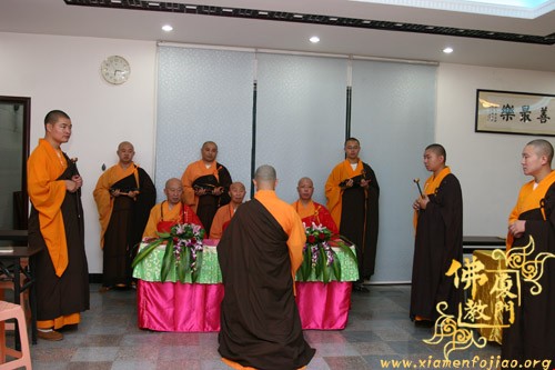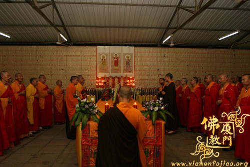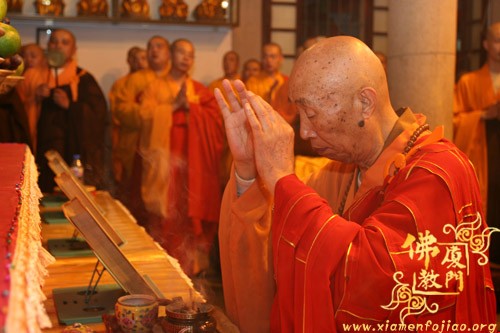 厦门普光寺为祈祷国泰民安、风调雨顺、社稷和谐、海众安合于2008年10月10日至17日(农历十二至十九)隆重启建“法界圣凡水陆空普度大斋胜会”七永日。为庄严法事,恭请“水陆王”圣修长老、如玉长老、普光寺住持传建法师主法,常仁法师为正表,灵光法师为助表,助法超荐。
