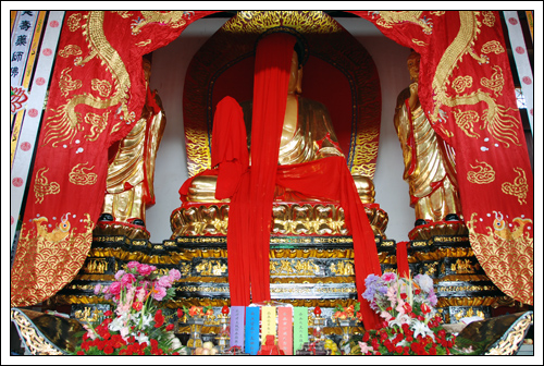 2008年10月2日,传喜法师应定云寺四众的迎请,主法大雄宝殿佛像开光大典,定云寺位于浙江临安市,天目山北麓;开光前的释迦如来坐像,神秘庄严。