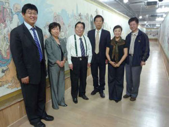 计佑铭(左三)带领众人参观《五百罗汉图》。