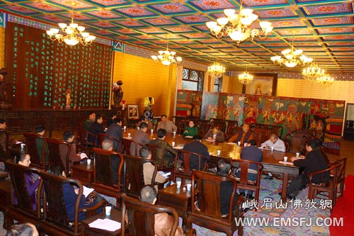 协调会上,峨眉山佛教协会永寿会长介绍了法会的流程及准备情况,他说,此次开光法会不仅是峨眉山佛教协会的事,也是峨眉山市的一件大事,希望得到峨眉山风景区管委会管委会及市有关部门的大力支持和协助。秦福荣和张建红也分别在会上作了重要指示,要求景区管委会和市相关部门高度重视此次法会,精心制定计划,周密安排布置,协调、配合好佛协的工作,保证12月14日的开光法会圆满、成功。
