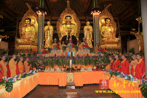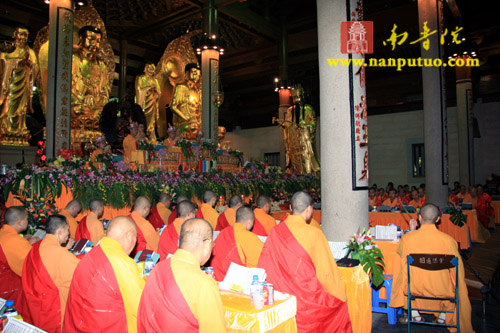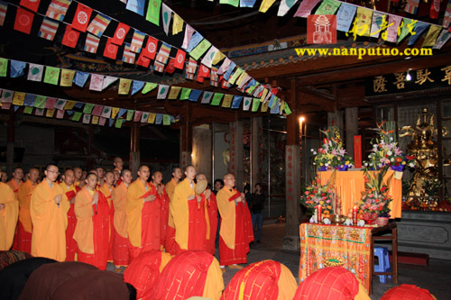 11月17日晚5时30分,南普陀寺妙真法师、演双法师、常明法师、本藏法师、宗智法师五大士引领寺中僧众聚集大坛施放冥阳普利大法会圆满瑜伽焰口。藉此祈愿世界和平、国泰民安,一切含灵皆得脱离苦轮,生大善趣。