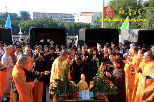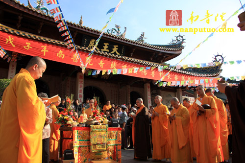 南普陀寺冥阳普利法会第五日于天王殿前举行放生仪式