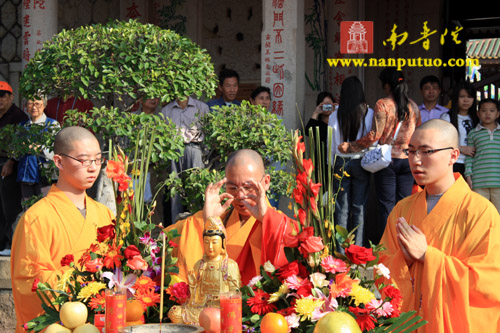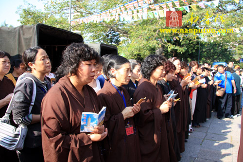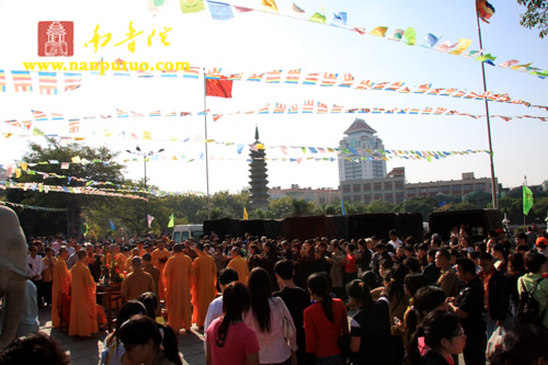 11月16日,南普陀寺2008年冥阳普利大法会进行到第五天。上午9时,我寺僧众在天王殿前举行了简短而又隆重的放生仪式,仪式由我寺首座了法法师主法。