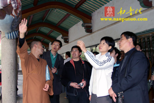 南普陀寺副寺兼书记德煌法师、大知客法尊法师受方丈则悟大和尚的委托,陪同客人参观了我寺的各个堂口,在参观过程中,来宾对我寺具有闽南风格的佛教建筑表现出极大的兴趣。
