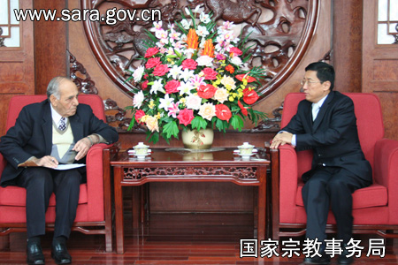 佛教在线北京讯 2008年12月16日,国家宗教事务局蒋坚永副局长会见了应中国宗教界和平委员会(简称“中宗和”)邀请,来华访问的亚洲宗教和平会议(简称“亚宗和”)名誉主席马瓦特一行。
