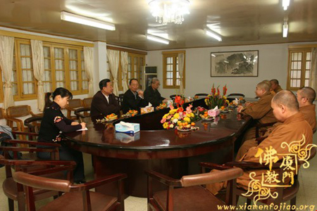2008年12月30日上午,福建省厦门市政协副主席陈耀中先生一行4人到厦门市佛教协会慰问。厦门市佛教协会会长、南普陀寺方丈则悟法师,厦门市佛教协会常务副会长定恒法师,副会长法云法师,秘书长净心法师,副秘书长能元法师等热情接待了陈副主席一行,并在佛协会议室座谈。