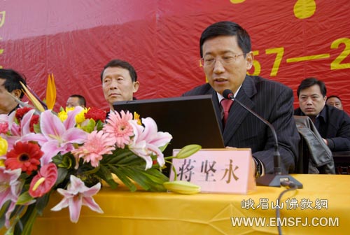 中国佛教协会咨议委员副主席、重庆市佛教协会会长惟贤长老在会上就四川省佛教协会成立50年来的历程进行了简要的回顾并对大会的召开表示热烈祝贺。国家宗教局蒋坚永副局长、四川省政协副主席、省委统战部陈光志部长、中国佛教协会副会长兼秘书长学诚法师分别在大会上作重要讲话。中国道教协会副会长、省道教协会会长唐诚青代表友教对纪念大会的举行表示祝贺。