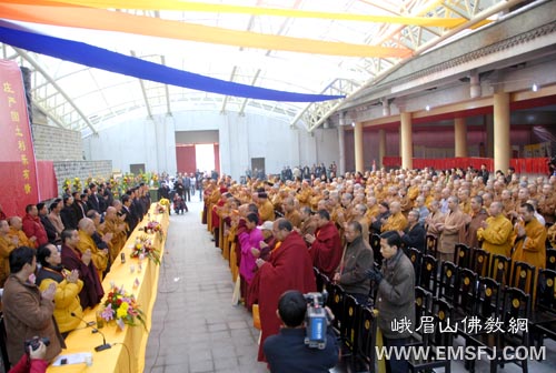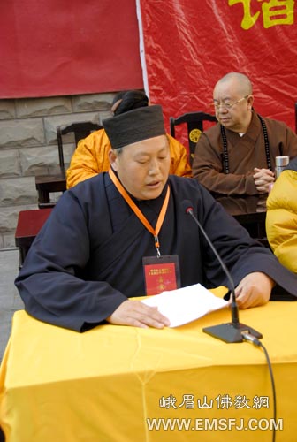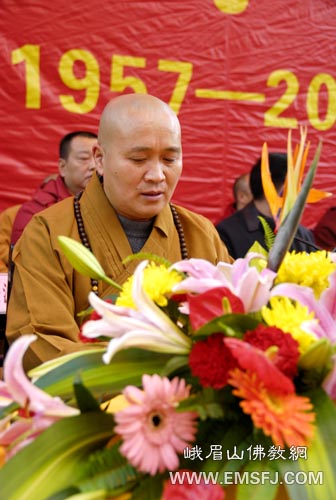 大会由四川省佛教协会秘书长王立军主持,为表达全省佛教界人士对汶川大地震遇难同胞的深切哀悼和对老一辈高僧大德的追思,参加庆典的全体与会同仁起立默哀三分钟。