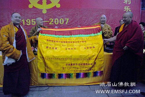 四川省佛教协会会长永寿法师作了四川省佛教协会成立50周年报告,报告回顾并总结了四川佛教在这五十年来走过的不平凡历程以及取得的成功经验和教训,要求省内佛教界继续高举爱国爱教的伟大旗帜,为和谐社会的构建发挥积极的作用。