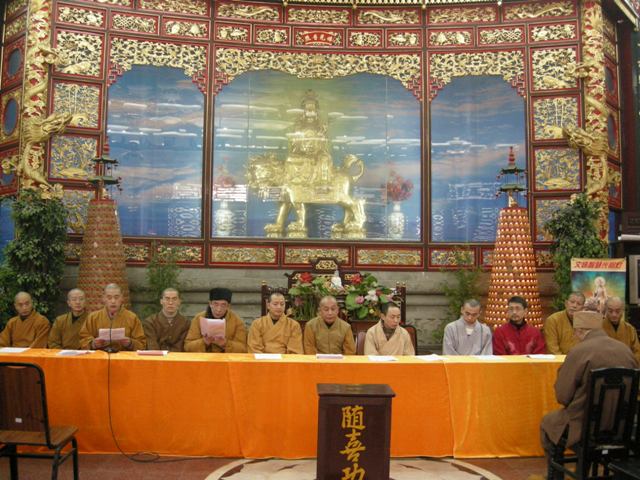 最后,道坚法师做了总结开示。道坚法师首先对2008年的工作情况予以了肯定,并对华岩寺上下几十个部门的领导人员和工作人员的辛勤付出表示了感谢。回顾过去的一年,寺院在各方面都有长足的发展,各个部门的管理制度已逐渐规范化,如财务管理方面,已实现全面电算化办公;华岩文教基金会广做慈善,帮助社会弱势群体,在今年5.12汶川大地震中积极深入灾区、参与救灾行动,并广泛开展了一些列赈灾活动;弘法部开展的一些列弘法活动,都取得了较好的成绩,让更多的年轻人认识了佛教;华岩寺佛教博物馆也于今年下旬正式建成,为保护中国传统文化奠定了良好的基础。