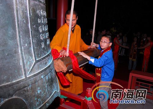 海南三亚南山撞108响吉祥钟辞旧迎新 祈福国泰民安