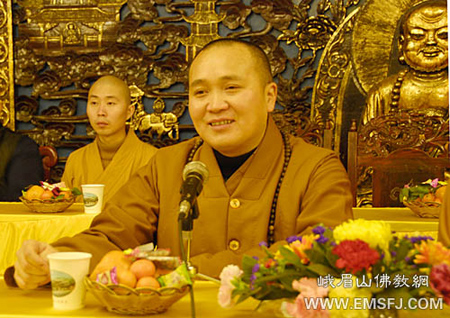 在座谈会上,永寿法师首先代表峨眉山佛协感谢各级领导、社会各界和十方信众对峨眉山佛教的关心、支持和帮助,感谢与会人员为峨眉山佛教的建设所付出的辛苦,并向大家致以新春的祝福,祝愿大家在新的一年里吉祥如意,法喜充满! 随后,永寿法师就如何在工作与生活中更好地体悟佛法为大家作了精彩的开示,还分别就峨眉山佛教的过去与未来作了回顾和展望,他希望与会人员一如既往地贡献智慧,一如既往地关心支持峨眉山佛教的建设,为“弘扬普贤文化,建设和谐名山”,为构建和谐社会做出自己的贡献。