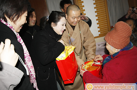 上海玉佛寺觉群慈爱功德会腊八节慰问福利院老人(图)