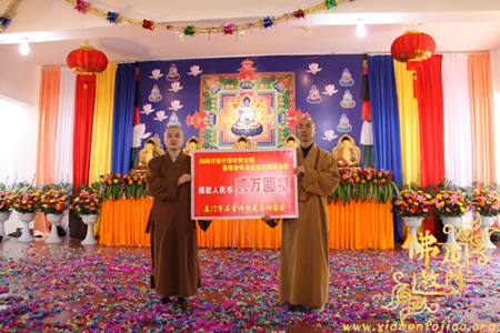 2009年1月1日上午8时,福建省厦门石室禅院在弘法讲堂举行了慈善功德会会员代表大会,并启动了2009年暖冬扶贫计划,向受助对象发放棉被, 食用油及慰问金。据悉,当日零点,福建省厦门市石室禅院与厦门卫视联合举行了“撞响福寿钟声、祈祷护佑一生” 09年新年撞钟活动。
