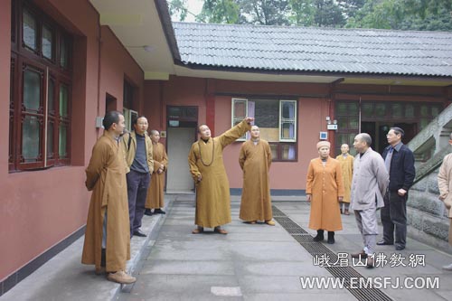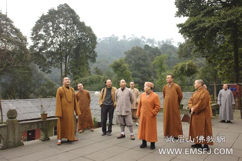 陪同视察的还有峨眉山佛教协会副会长心定法师、演法法师,四川峨眉山佛学院副院长满霖法师、峨眉山佛教协会秘书长宏开法师、四川峨眉山佛学院教务长永照法师。