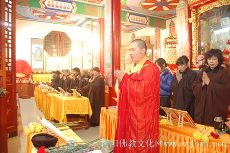 2009年2月6日至22日,河南省南阳市植福寺举行第四届《万佛名忏》祈福消灾法会,星光法师带领与会信众诵经祈福。