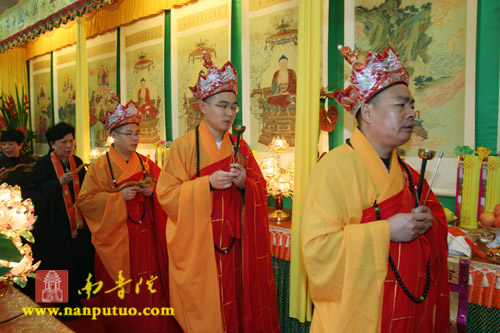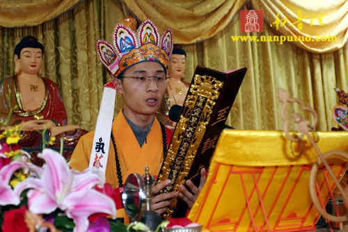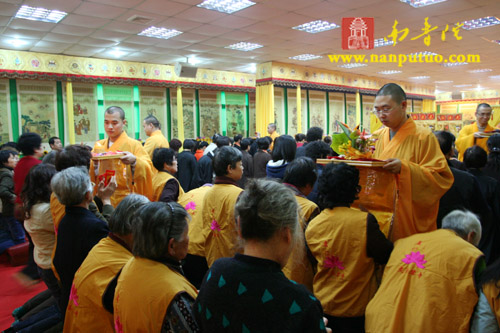 上午8时,内坛礼大忏悔文。大家在礼忏时,观想自身与六道众生,同诵佛名、同忏罪障、同得解脱。