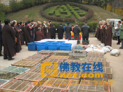 2009年3月11日,释迦牟尼佛涅槃日,江苏省南京市古鸡鸣寺举行放生法会。法会由古鸡鸣寺监院心法法师主持,四众弟子随喜参加。