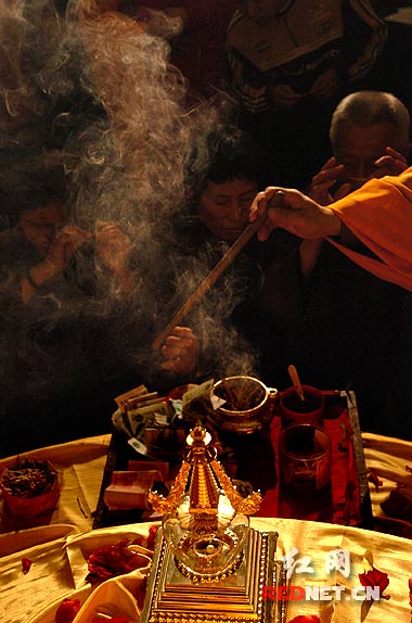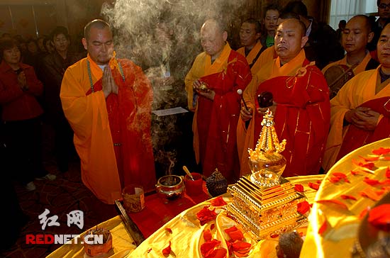 湖南省佛教界人士为从尼泊尔迎请回来的释迦牟尼佛舍利举行隆重的法事。