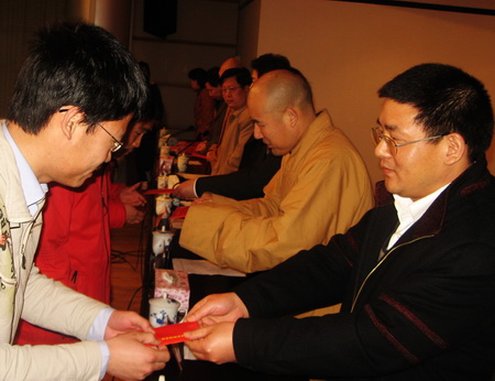 参加这次会议的有江西庐山东林寺代主持大安法师、东林慈善功德会会长镜义法师、九江市副市长卢天锡、九江宗教局局长朱晓林、民政局副局长王小军、市教育局助理调研员陈守兴、九江学院党委书记陈绵水博士、、九江学院校长甘筱青博士及九江学院各有关部门负责人、获奖助学金学生等。