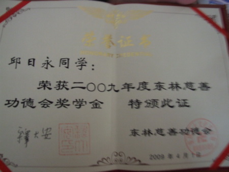 2009年4月1日下午3:30,东林慈善功德会在江西省九江学院举行了奖助学金设立暨发放仪式。