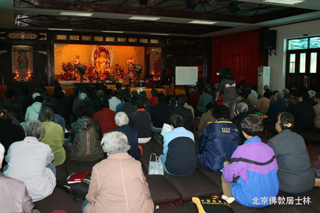 2009年4月15日,北京佛教居士林邀请明证法师在居士林维摩经堂为居士们开示佛法。明证法师针对日常学修,着重介绍了念佛、参禅的修行方法及基本要领,并解答信众提出的问题,居士们深受法益,法喜充满。