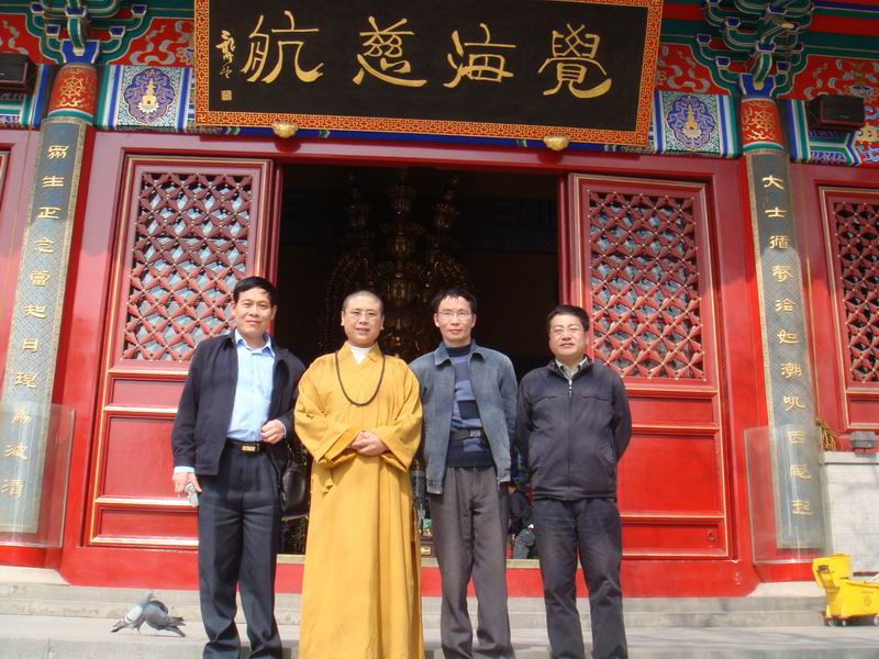 2009年4月17日, 上海市民族和宗教事务委员会研究室陈三弟主任,区县工作指导处许开盛处长一行来到天津荐福观音寺参观指导,受到妙贤住持及监院如正法师的热情接待.