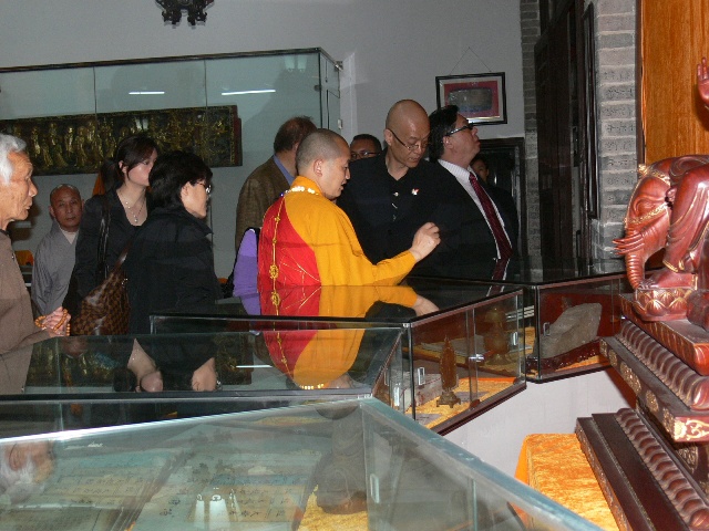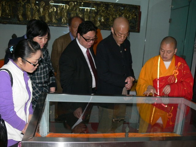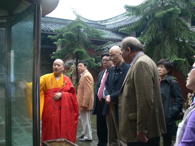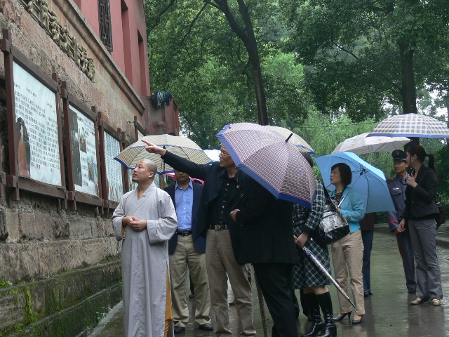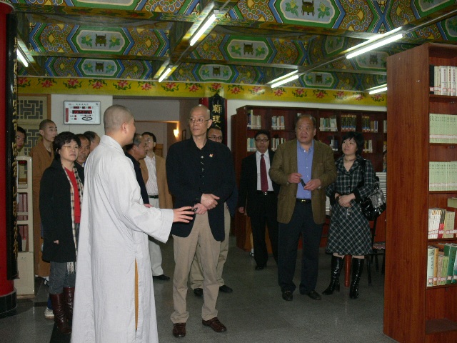 在道坚法师的陪同下,各位领导参观了重庆华岩寺的佛教图书馆、佛教艺术馆、佛教博物馆、以及各个殿堂。法师各位来宾介绍了重庆华岩寺的佛文化建筑、弘扬佛教文化的相关理念。大家由衷地赞叹重庆华岩寺对中国传统文化的弘扬与传承精神。