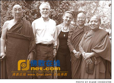 (照片从左至右: 印度菩提伽耶Burmese Vihar寺住持Sayadaw U Nyaneinda, 佛教研究项目负责人Robert Pryor,佛教研究项目工作人员Dianeah Wanicek,印度菩提伽耶Burmese Vihar寺比丘尼Dharmavijaya 和Molini)