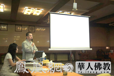上海龙华古寺演道法师代表无尽意图书馆汇报工作成果