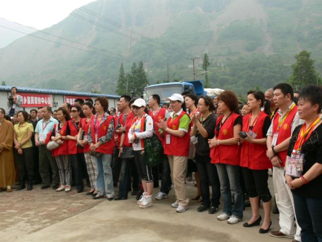 道坚法师与中华全民推广协会的爱心大使们在北川陈家坝