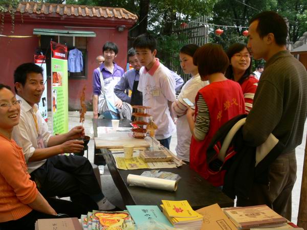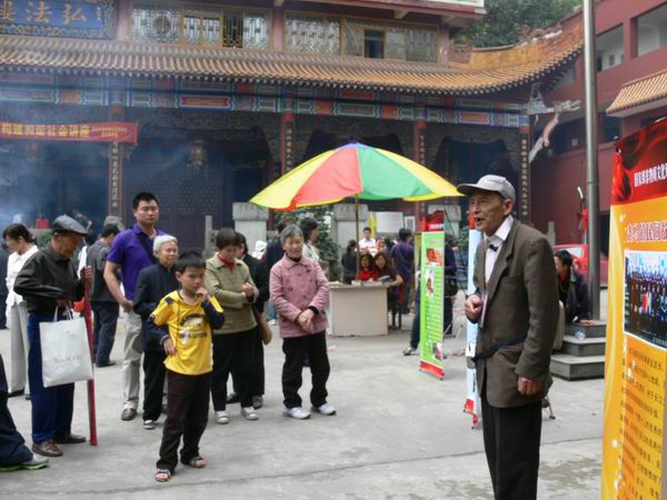 法会当天,来自重庆市九龙坡区文化局部分民间传统艺术、国家级非物质文化遗产项目的艺术家们,为大家表演了爆米花、剪纸、糖画、“金钱板”、走马镇民间故事、柔术,以及原汁原味的架香等节目。让大家感受中国传统文化的魅力。