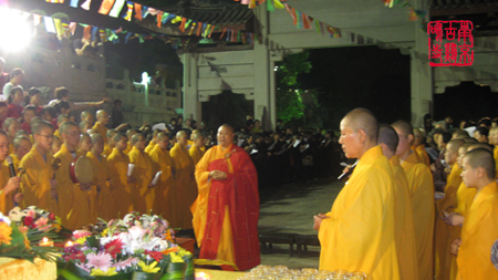 莲华法师与参加法会的500多名四众弟子一起,诵读了《传灯祈愿文》,祈愿世界和平、国家风调雨顺、灾区人民安居乐业。