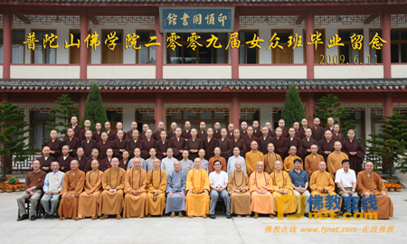 2009年6月11日上午,普陀山佛学院2009届学僧毕业典礼在该学院讲堂隆重举行。此届毕业生共92人,男众44人,女众48人。