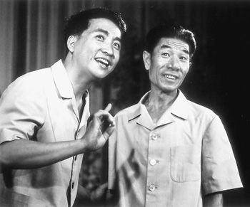 图为上世纪60年代侯宝林和郭启儒下基层演出。
