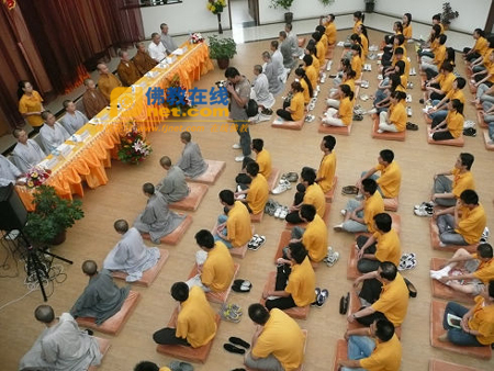 仪式由思义法师主持。期间,见宏法师、如瑞法师等分别为营员们做了简短而精彩的开示。最后,营员们在老师的带领下一起合唱了开营歌曲《我的世界》。