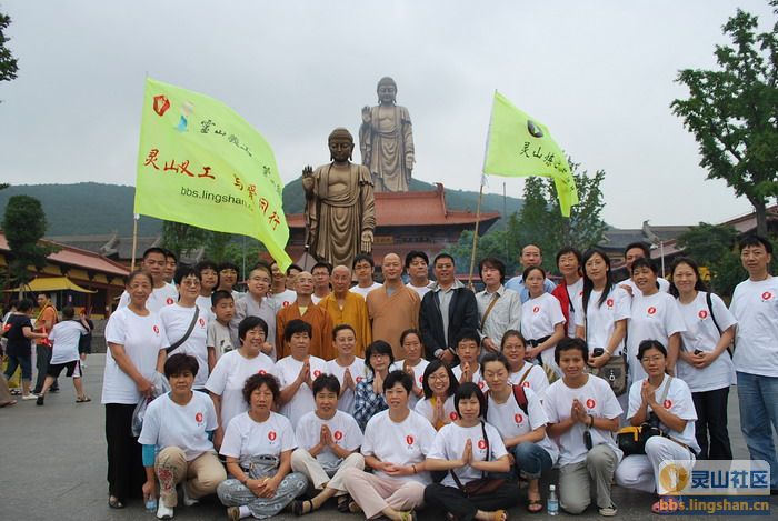 山抹微云,露花照影,今日的灵山格外的美丽,细细的微风轻抚着景区的一草一木,一山一水,佛恩遍洒大地,世界一片清凉。上午灵山公司工作人员带领师父和学员、义工一起畅游了这座驰名中外的名胜,在灵山的各大景点,都充满了营员们的欢声笑语。每到一处,大家都争先恐后的和在一起生活了几天的师父们合影留念,看来师父们的演讲给了学员们很好的启发,亲近师父成了最开心的事情。为了方便大家,灵山公司还特地派出了金牌导游给大家做精彩的介绍。