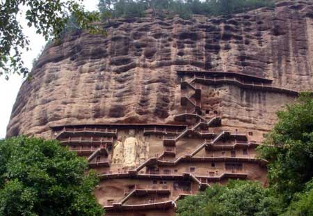 据麦积山石窟艺术研究所副所长魏文斌研究员介绍,受汶川大地震波及,位于麦积山绝顶的清代重修砖塔塔身震裂,塔基严重下沉。经省文物局批准,麦积山石窟艺术研究所对该塔进行整体落架拆除维修。近日在拆除维修及考古清理过程中,塔之天宫出土清代重修时放入的瓷罐,内装白釉瓷瓶、49枚清代铜线以及金、银、玛瑙等象征佛教五宝的小型宝物、五谷等。塔为实心砖塔,内部充填残碎砖块,其中有40多块宋代铭文砖,完整铭文为“走马供奉侍其并妻钱氏二娘施砖”。尤为重要的是,塔基内发现摆放整齐的北朝石雕造像11件。造像面南摆放,排列整齐,组合明显。中间为二坐佛和一坐菩萨组成的三世佛主尊,两侧排列供养菩萨和弟子、供养弟子、力士、天王等。其中主尊中的坐姿菩萨、跪姿供养菩萨和弟子都是麦积山现存洞窟中未曾见过,力士和天王造像与麦积山现存洞窟中的造像大相径庭。