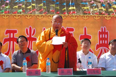 张家口市佛教协会副会长、云泉禅寺方丈果岚代表市佛协讲话。